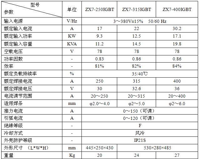 6.推力電流和引弧電流無級可調(diào),適合于各種酸堿性焊條的施焊;